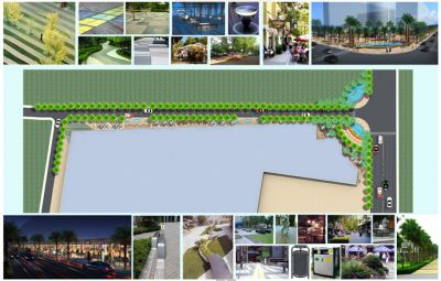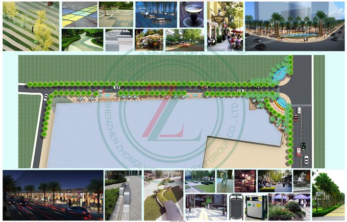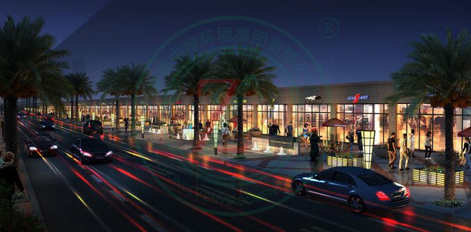 項目位于惠州市宏村,擬建造成現代商業步行街。周邊自然風光秀麗,生態環境優雅,具有良好的先天景觀資源優勢。設計以聚焦現代經典,展現穩重大氣為目標。設計師運用軸線對稱布局,采用點,線,面成景的方式,把步行街原本內外不同的景點,連接成為一個有機的整體。同時本身又成為“視線走廊”和“生態走廊”。設計風格為現代主義風格。