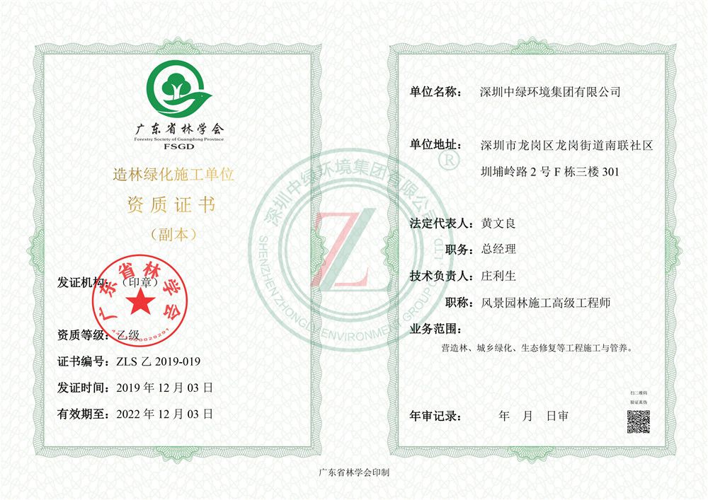 深圳中綠環境集團有限公司 - 走進中綠 - 資質證書